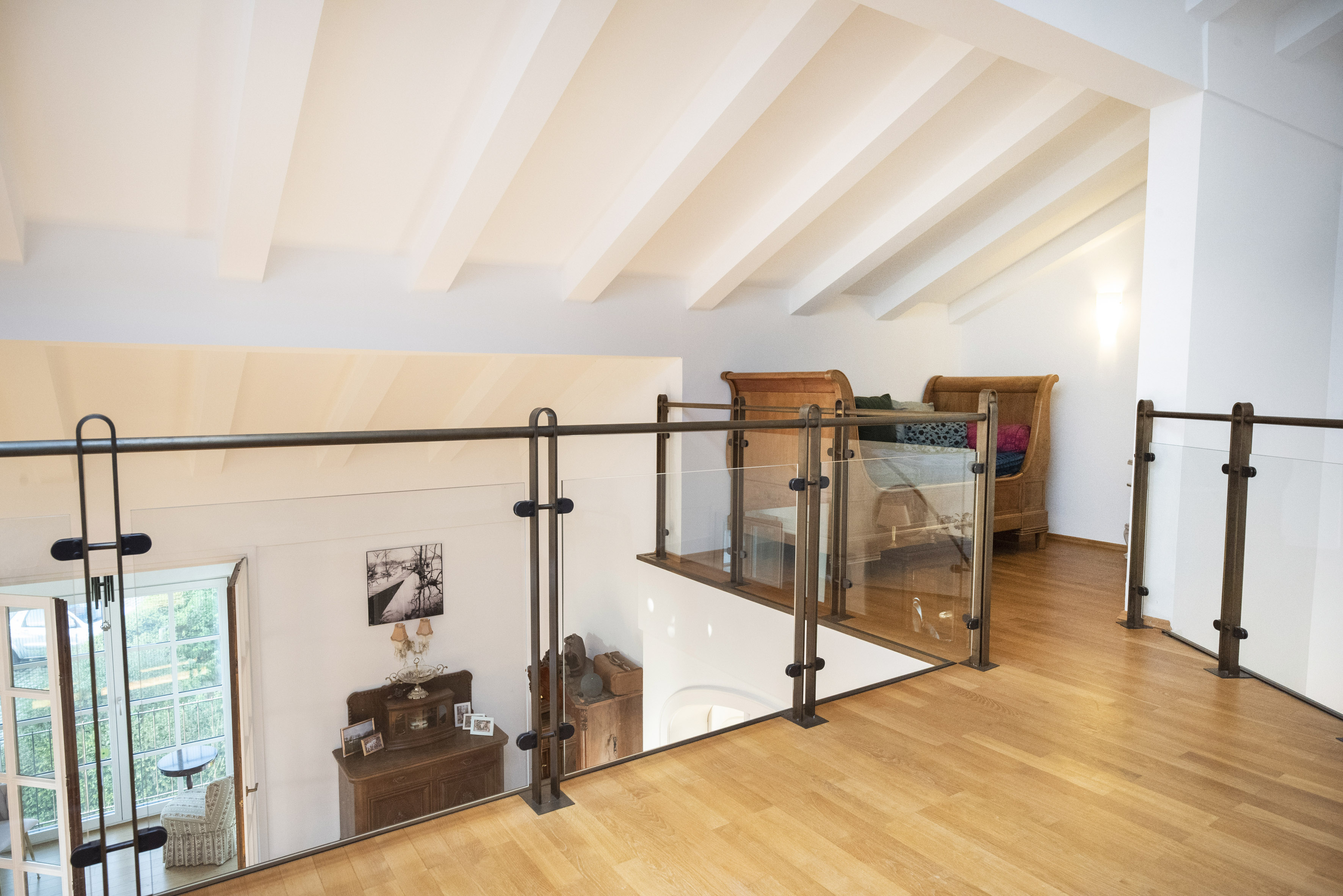 - Glasbrüstung der Galerie bietet Licht und Raum und öffnet Blick bis hin zum OG